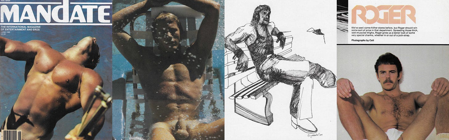 Mandate / June 1980 🌊 Roger by Colt, HOT! by various photographers & R.I.P. Cruising illustrations by Jane Wechsler
